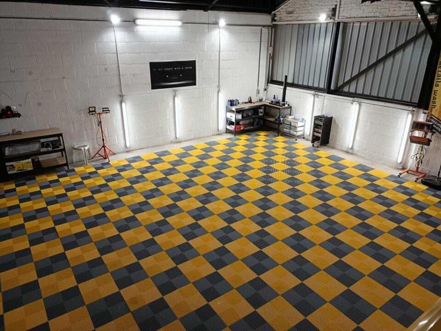 Transformez votre sol de garage en un sol design personnalisé antidérapant et résistant à la décoloration. Nos dalles de sol de garage haut de gamme sont faciles à entretenir. Nos dalles vous offrent une apparence très moderne grâce au large panel de couleurs, ainsi que cohérente et durable, vous n'aurez donc pas à vous soucier de l'usure et de l'année. Nos dalles sont adaptées aux ateliers, paddock, garages, showroom...