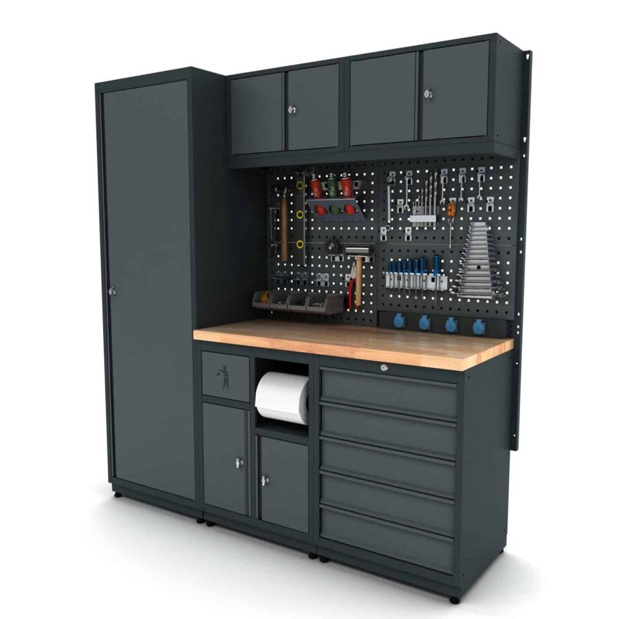 Découvrez également notre armoire de rangement garage "atelier 4 éléments H2020xL2480xP530 mm"Pour optimiser l'organisation de votre espace de bricolage, envisagez d'ajouter notre meuble modulable qui complète votre Aménagement optimal de garage et atelier, offrant six éléments supplémentaires pour un rangement encore plus fonctionnel. Cette armoire de rangement économique pour garage existe également avec 5 éléments adaptés à tous vos besoins.