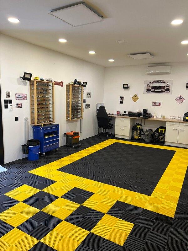 Transformez votre sol de garage en un sol design personnalisé antidérapant et résistant à la décoloration. Nos dalles de sol de garage haut de gamme sont faciles à entretenir. Nos dalles vous offrent une apparence très moderne grâce au large panel de couleurs, ainsi que cohérente et durable, vous n'aurez donc pas à vous soucier de l'usure et de l'année. Nos dalles sont adaptées aux ateliers, paddock, garages, showroom...